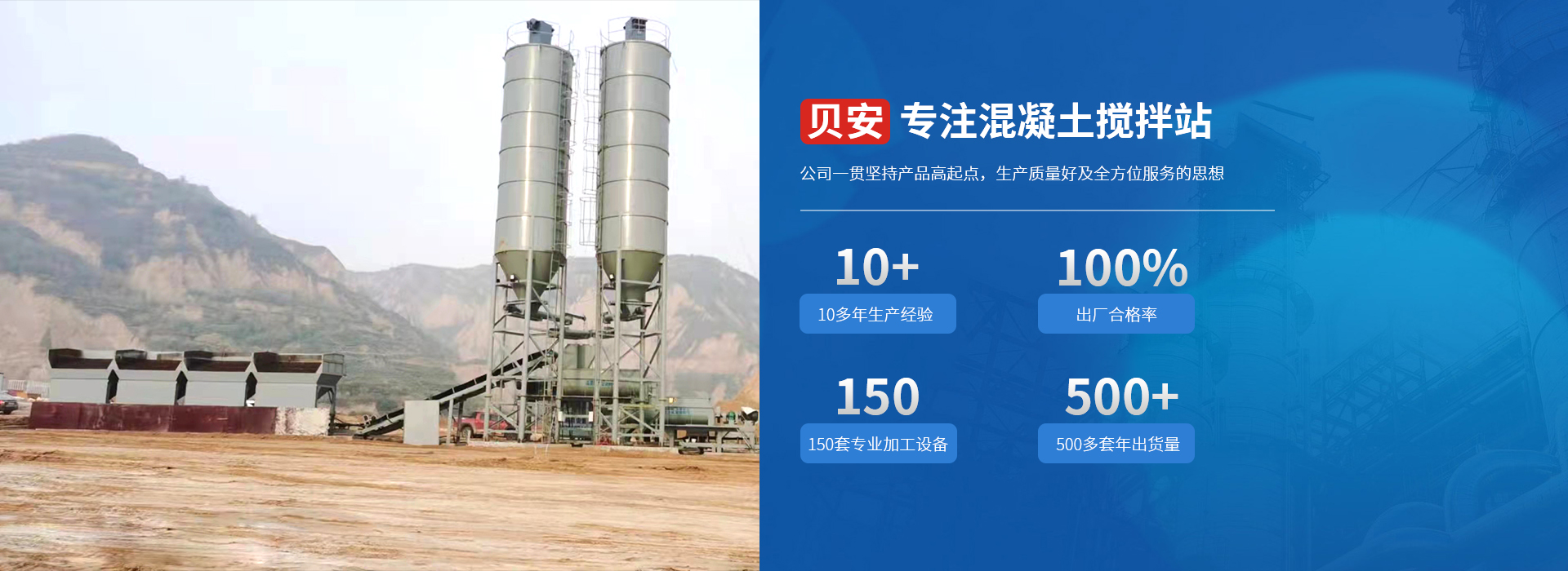 山東貝安重工有限公司是一家新型的民營企業,專業從事穩定土拌合站、混凝土攪拌站、水穩拌和站等穩定土攪拌設備的設計、生產、安裝調試及維護。自成立以來,企業不斷發展和壯大。公司一貫堅持產品高起點,生產質量好及全方位服務的思想,使企業再建筑行業中有著一定聲譽。 公司主要生產制造穩定土拌和站,穩定土拌合站,穩定土場拌設備,混凝土攪拌站,水穩拌合站,二灰拌合站,級配碎石拌和站等主導產品,并形成規模化生產,靈活的生產方式和全方位的售后服務贏得了廣大用戶的一致好評,產品行銷各地。公司的售后服務人員業務熟練,承諾對產品實行終生服務,想用戶所想,急用戶所急,較大限度的滿足用戶要求。 公司的售后服務人員業務熟練,技術精湛,承諾對產品實行終生服務,想用戶所想,急用戶所急,較大限度的滿足用戶要求。始終堅持"質量號,用戶至上"的方針受到用戶的廣泛好評。 "團結拼搏,開拓創新,科技興廠"是公司的企業精神,體現了山東貝安重工有限公司全體員工不斷自我完善的進去精神。 山東貝安重工有限公司攜全體員工恭候您的光臨指導 。